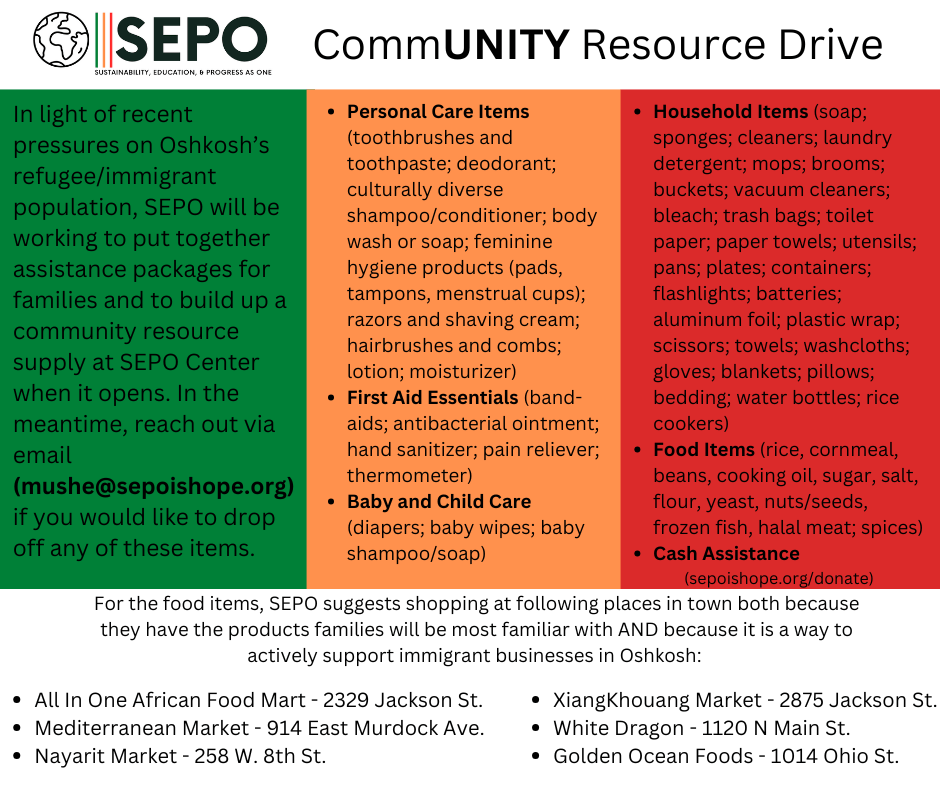 If you are need of advocacy services, reach out to Mushe at mushe@sepoishope.org or 920-312-2048.